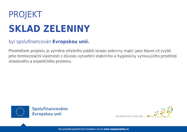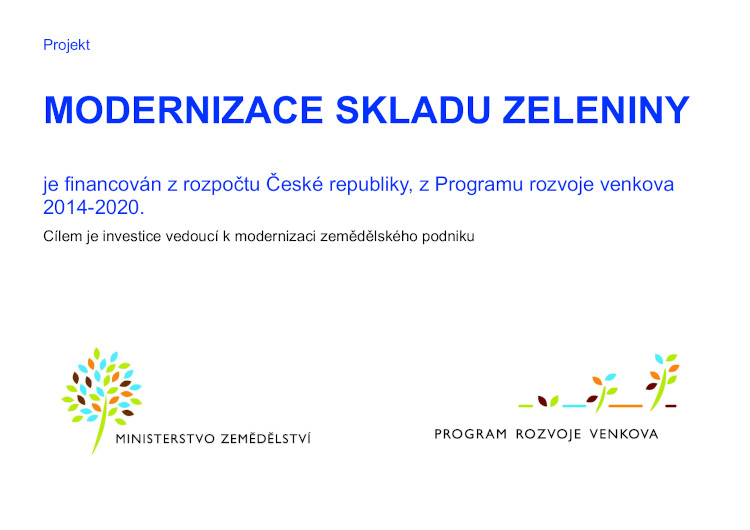 Společnost ZELTR Agro a.s., se sídlem Roketská 790/23, Troubky, tímto informuje, že ve výrobním areálu společnosti realizuje projekt, v rámci Programu rozvoje venkova na období 2014 - 2020. Opatření: Investice do zemědělských podniků.